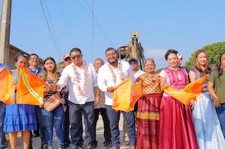 El presidente Miguel Sánchez Altamirano encabezó esta mañana el banderazo de arranque para el revestimiento de las avenidas Adolfo Ruiz Cortines, Niños Héroes y Heliodoro Charis Castro en la agencia de Chicapa de Castro. Acompañado del agente municipal Felipe Medrano Álvarez, concejales y vecinas y vecinos de la comunidad.