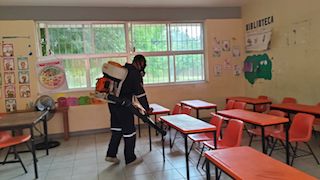 Durante esta mañana se estarán atendiendo otras instituciones que ya realizaron su solicitud, reflejando la respuesta cercana y oportuna del Gobierno Juchiteco ante esta situación sanitaria. El presidente Miguel Sánchez Altamirano invitó a las y los directores de escuelas, así como a madres y padres de familia, a acercarse a la Coordinación Municipal de Protección Civil para solicitar este servicio gratuito de sanitización, a fin de que más planteles sean beneficiados. “Si actuamos juntos, podremos reducir la propagación del virus y proteger lo más valioso que tenemos, la salud de nuestras niñas y niños”, señaló.