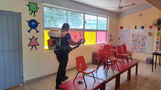 Las brigadas municipales continúan realizando labores de desinfección en salones, pasillos y áreas comunes, priorizando los centros educativos con mayor concentración de niñas y niños. Estas acciones preventivas buscan reducir riesgos de contagio y garantizar entornos más seguros para estudiantes, docentes y personal administrativo.