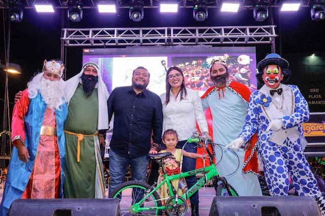 Con actividades recreativas y regalos, niñas y niños de Juchitán celebraron el Día de Reyes en el parque Benito Juárez. las y los pequeños recibieron obsequios y fueron acreedores de un boleto para participar en la rifa de bicicletas, así como de dos carros eléctricos infantiles, propiciando una celebración llena de entusiasmo, convivencia y unión.