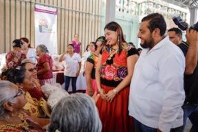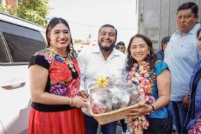 Esta mañana, la presidenta honoraria del DIF Oaxaca, Irma Bolaños Quijano, visitó la Heroica Ciudad de Juchitán de Zaragoza para encabezar junto a la doctora Reina Alonso Carrasco, presidenta del DIF Municipal, la entrega de apoyos alimentarios, aparatos funcionales y servicios sociales a familias del municipio. La jornada se realizó en un ambiente de cercanía y colaboración, donde ambos niveles de gobierno reafirmaron su compromiso con las personas en situación de vulnerabilidad.