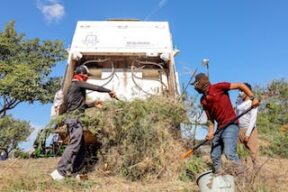 Los espacios públicos y de uso común, como canchas deportivas y parques, forman parte de una programación permanente de atención que realiza la brigada especial del Gobierno Juchiteco, debido a la rápida crecida de arbustos y monte en distintos puntos de la ciudad. Bajo este esquema, los espacios se visitan de manera periódica; en el caso de la cancha de usos múltiples Los Campesinos, los trabajos de limpieza, poda y desmonte se realizan a petición de vecinas y vecinos de la zona.